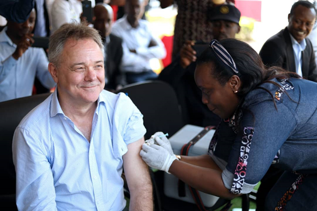 For Jeremy Farrar who has been exhibiting, on twitter, love for Rwanda that he was visiting for the first time, receiving the first dose of Ebola vaccine is one more reason for him to come back to this country. “I will leave Rwanda with a very special gift and a sore arm but I promise to come back to receive my second dose in February 2020 after 56 days”