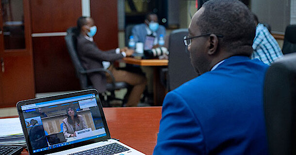 The Rwanda delegation participates in the Virtual World Health Assembly